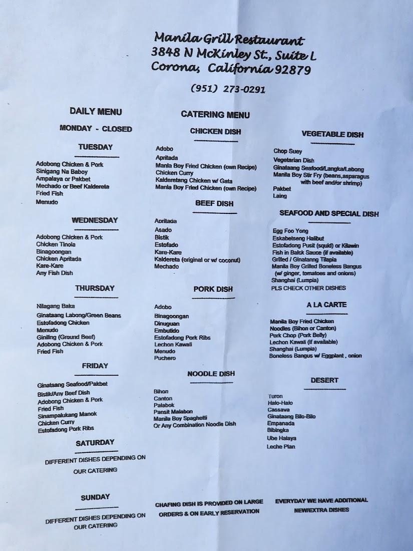 Serving the Corona community since 1996, Manila Grill holds a reputation as a reliable culinary destination for Filipino dishes that honor tradition. Owned and operated by Ate Nelia, who welcomes guests warmly, this mom-and-pop establishment thrives on relationship-building alongside excellent food. Customers return not just for the menu variety but for the familial atmosphere and thoughtful touches in every dish.